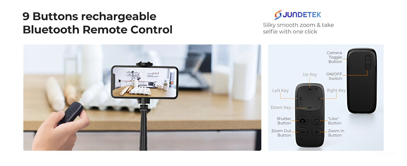 As a small business owner, I needed something reliable for product shots and live demos. The JUNDETEK™ Pocket360-X96 Auto-Open Tripod has been a total game-changer. The auto-open tripod legs save me so much time, and the remote allows me to switch cameras and zoom easily without running back and forth. Build quality is excellent, especially the metal connecting rod and silicone foot pads. I can finally shoot professional-looking videos alone!